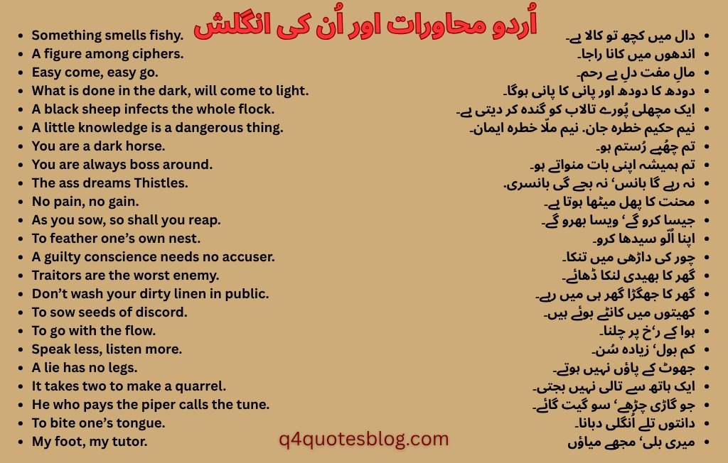 اردو محاورات اور اُن کی انگلش