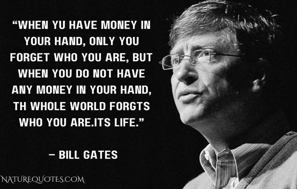 when you have money in your hand, only you forget who you are, but when you do not have any money in your hand, th whole world forgts who you are.its life. – bill gates