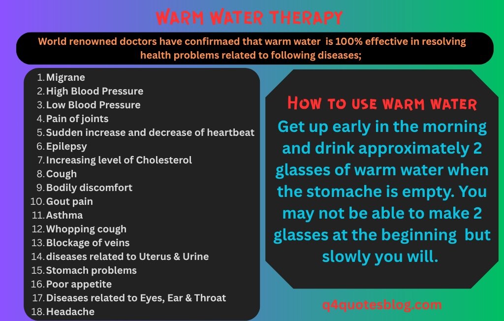 Warm water therapy, also known as hydrotherapy, involves the use of warm water to relieve pain, improve circulation, and promote relaxation. It is commonly used in physical therapy and rehabilitation to treat conditions like arthritis, joint pain, and muscle stiffness. The warmth of the water helps to relax muscles and reduce tension, making movement easier and less painful. Buoyancy in water reduces the strain on joints, allowing for low-impact exercises. This therapy is especially beneficial for people recovering from injuries or surgeries. It can also help improve sleep and reduce stress. Warm water therapy may include soaking in a hot tub, water-based exercises, or targeted treatments under professional guidance. It’s a soothing, natural way to support healing and overall wellness.